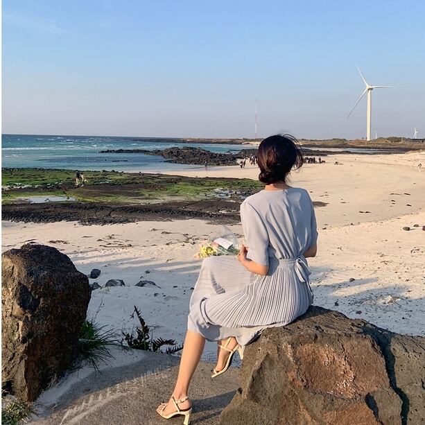 スカートはプリーツデザインの大人ワンピースです。