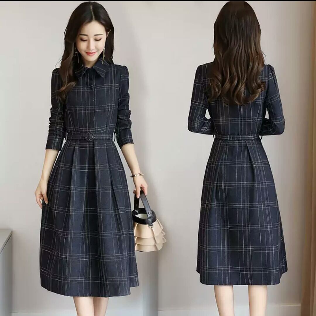 全5色 ミモレ丈 チェック柄 ワンピース ロング丈 キレイめ エレガント 可愛い 大人 通勤 通学 オフィス お出かけ デート お買い物 女子会 秋冬 春 大きいサイズ