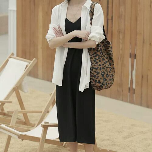 Vネック ストラップ ワンピース ロング丈 マキシ丈 重ね着 大人 シンプル 無地 カジュアル 可愛い キレイめ お出かけ お買い物 デート 女子会 春 夏 通学 学生 通勤 韓国ファッション