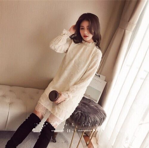プチハイネックが可愛いレースのミニワンピースです。