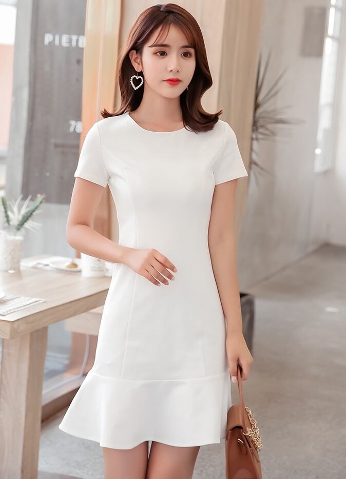 全2色 ワンピース ミニ丈 フリル マーメイド スリム ラウンドネック 半袖 無地 Aライン 上品 大人可愛い きれいめ カジュアル お呼ばれ デート 女子会 ディナー 夏