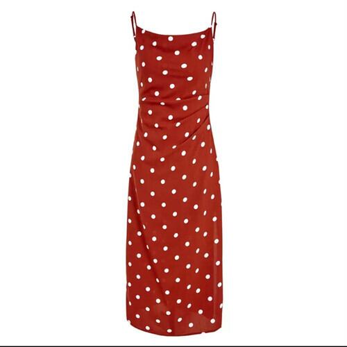 ドット柄 ストラップ ワンピース ロング丈 ドレス スリット 大人 可愛い カジュアル キレイめ 上品 エレガント リゾート お出かけ お買い物 デート 女子会 春 夏 通学 学生 通勤 韓国ファッション