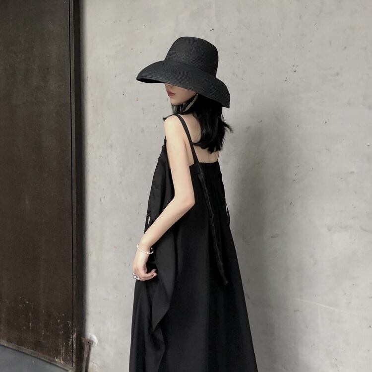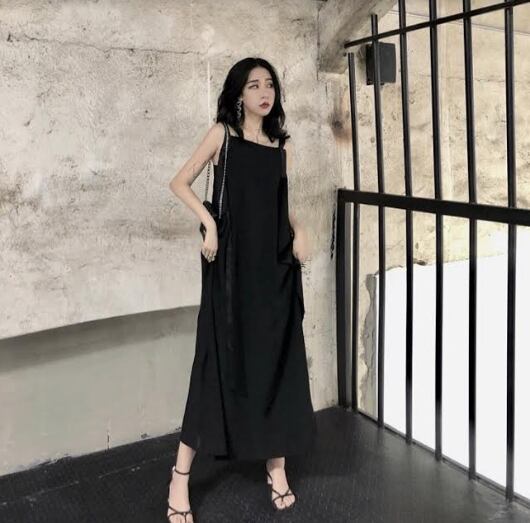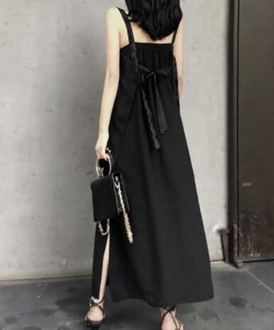 ワンピース ロング丈 ゆったり テープリボン サイドスリット ノースリーブ 無地 きれいめ 上品 大人 カジュアル 女子会 フリル エレガント 春 夏