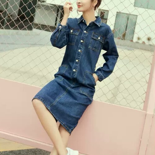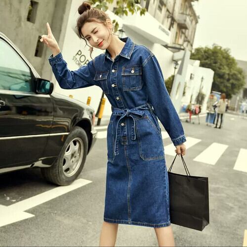 デニム ワンピース ベルト リボン ひざ丈 ミドル丈 大人 カジュアル 可愛い ジーンズ お出かけ お買い物 デート 女子会 春 秋 通学 学生 通勤 韓国ファッション