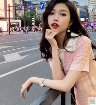 全2色 ワンピース ショート丈 ボタン スリム ポロネック 半袖 Tシャツワンピース ボーダー 大人可愛い シンプル カジュアル デイリー お出かけ 夏