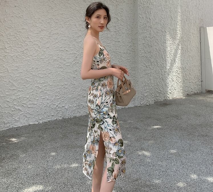 キャミソールワンピ ワンピース 花柄 ミモレ丈 サイドスリット ボタニカル スリム フェミニン 大人可愛い 上品 カジュアル きれいめ デート 女子会 春 夏