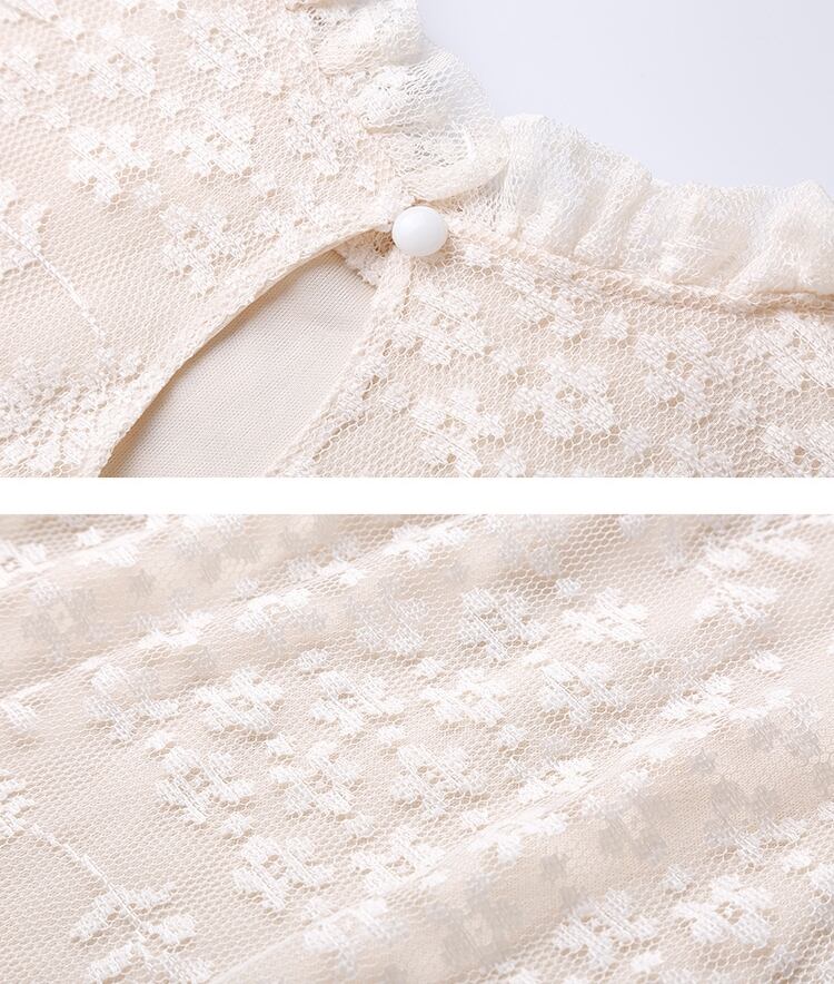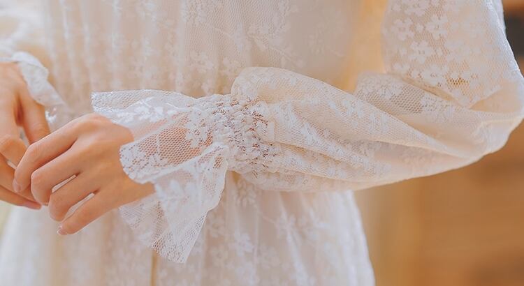 ウエストシャーリングデザインが女性らしいシルエットを活かし、裾には透け感があるため、レースがよりキレイに見えます♪