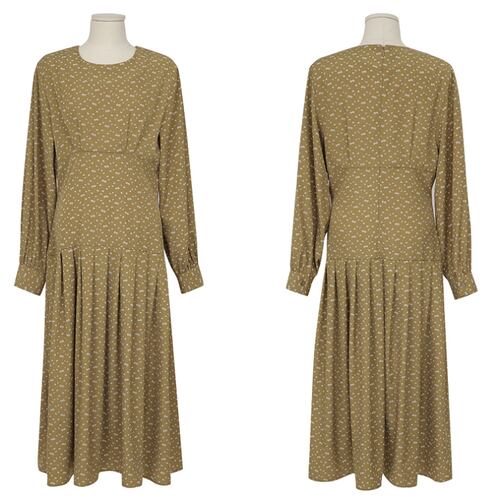ロングワンピース 花柄 フレアスカート 長袖 ラウンドネック ハイウエスト レトロ ゆったり カジュアル かわいい きれいめ お出かけ デート