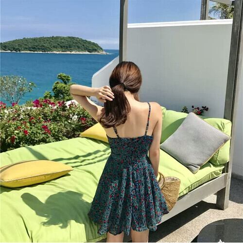 花柄 サスペンダー ワンピース ストラップ ショート丈 大人 カジュアル キレイめ 可愛い リゾート お出かけ お買い物 デート 女子会 通学 学生 通勤 韓国ファッション