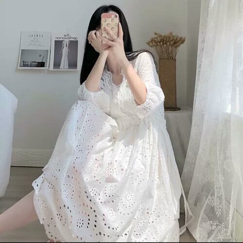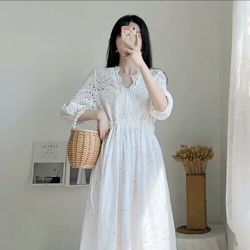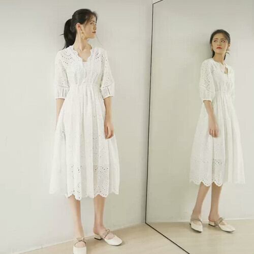 レースワンピース シンプル 白 爽やか 大人 カジュアル キレイめ 可愛い 上品 お出かけ お買い物 デート 女子会 通学 学生 通勤 韓国ファッション