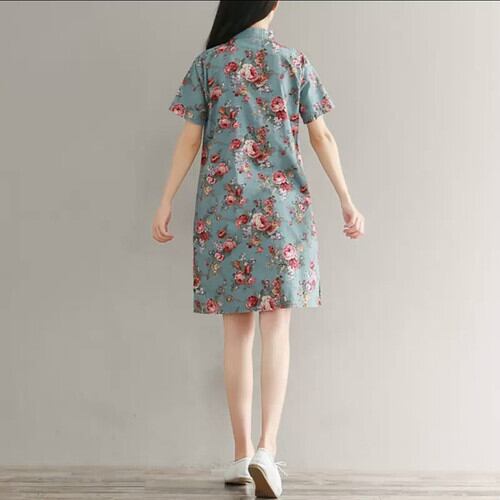花柄 チャイナドレス風 ワンピース ショート丈 半袖 大人 キレイめ カジュアル 可愛い お出かけ お買い物 デート 女子会 通学 学生 通勤 韓国ファッション 春 夏