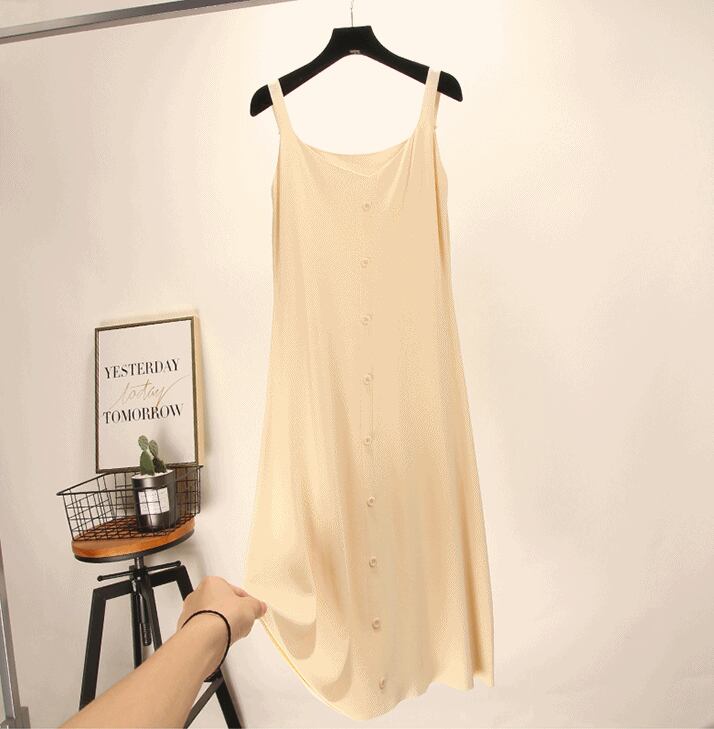 全4色ワンピース キャミワンピース ひざ丈 スリム フロントボタン デイリー 無地 大人可愛い リゾート カジュアル サマーニット Vネック 夏