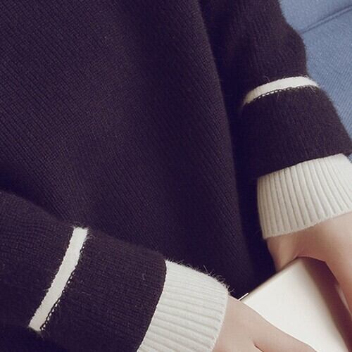 全4色2種 ニット ワンピース ひざ丈 ショート ミニ丈 バイカラー ハイカットネック プリーツ 重ね着風 秋冬 レトロ 大人可愛い デート お出かけ デイリー 20代