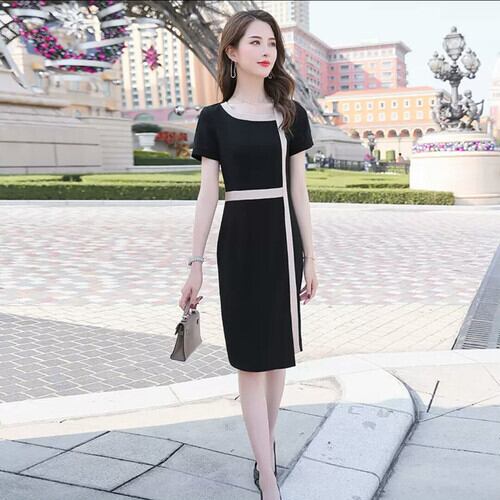 全2色 大きいサイズ シンプル スタイリッシュ ひざ丈 ワンピース ドレス オフィス 上品 エレガント スリム 大人 キレイめ お呼ばれ パーティー 会食 お出かけ お買い物 デート 女子会 通学 学生 通勤 韓国ファッション 春 夏