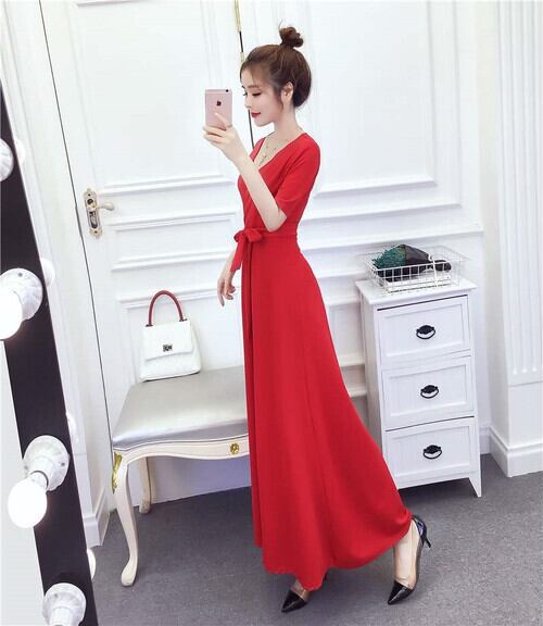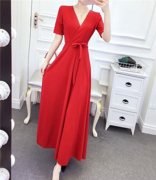 全3色 パーティドレス ロング丈Vネック フォーマル エレガント 半袖 ロングドレス お呼ばれドレス 無地