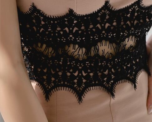 レースのディテールがフェミニンなミニ丈ワンピースドレスです。
