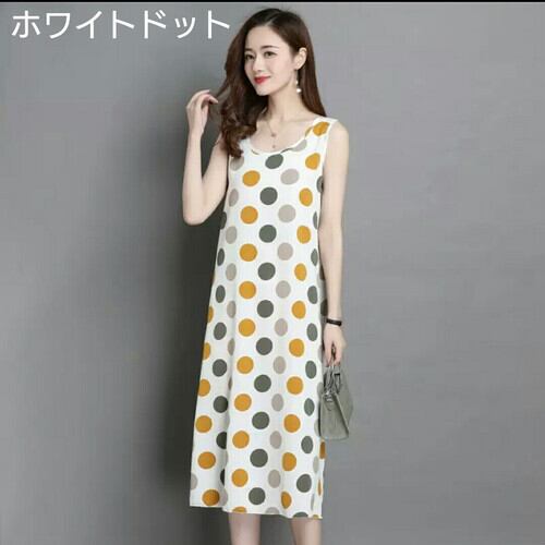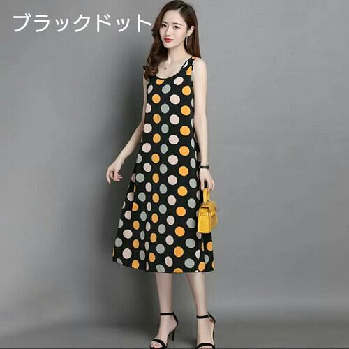 全3種2色 ノースリーブ ラウンドネック 大きいサイズ 柄 ワンピース ミモレ丈 大人 カジュアル 可愛い キレイめ エレガント 上品 お出かけ お買い物 デート 女子会 通勤 通学 学生 韓国ファッション 春 夏