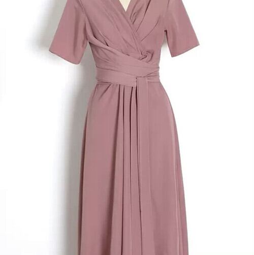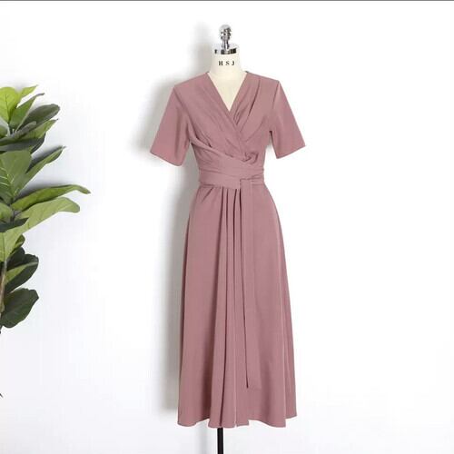 全3色 半袖 Vネック レトロ フレンチ ワンピース ロング丈 大人 カジュアル 可愛い キレイめ お出かけ お買い物 デート 女子会 通勤 通学 学生 韓国ファッション 春 夏 秋