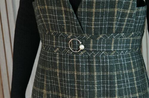 インにはタートルやブラウスなどを合わせて幅広く楽しめるデザインです。