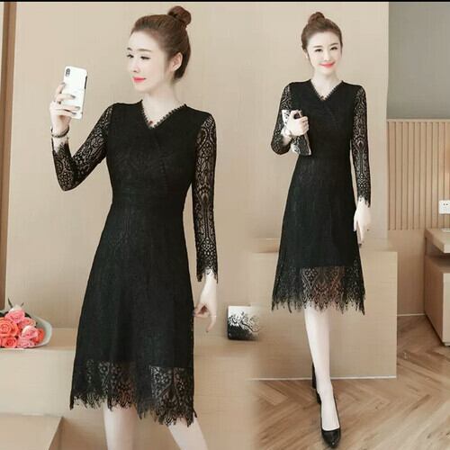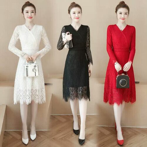 全3色 ひざ丈 ワンピース 無地 レース タイト パーティー イベント 大人 キレイめ エレガント お出かけ お買い物 デート 女子会 秋冬 春