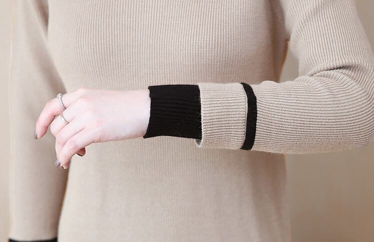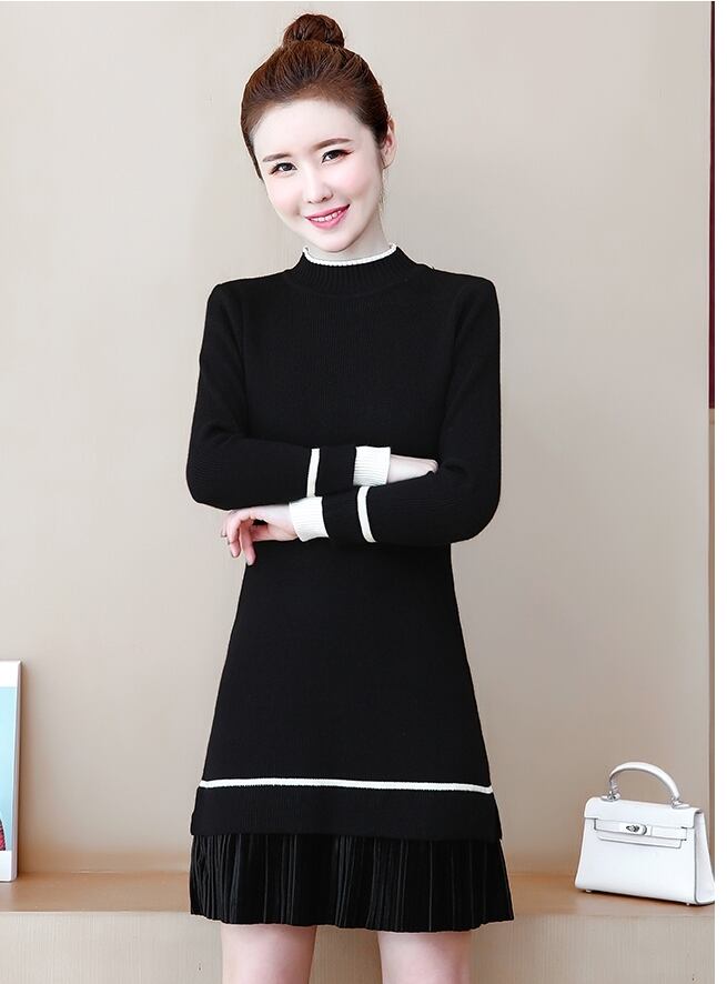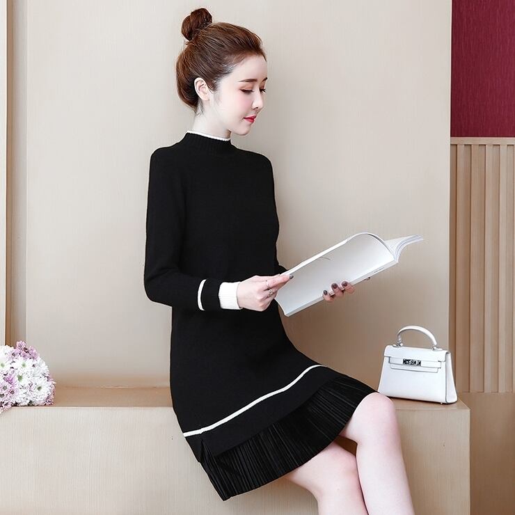 全2色 ショート丈 ワンピース ニットワンピース ライン プリーツ バイカラー フリル 長袖 秋 冬 デート カジュアル 可愛い