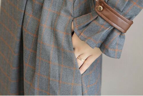 落ち着いたグレンチェックが上品なミモレ丈ワンピースです。