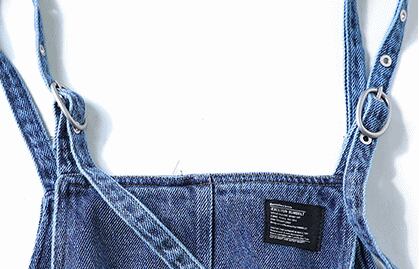 デニム素材でトレンドを感じさせるサロペットスカート。