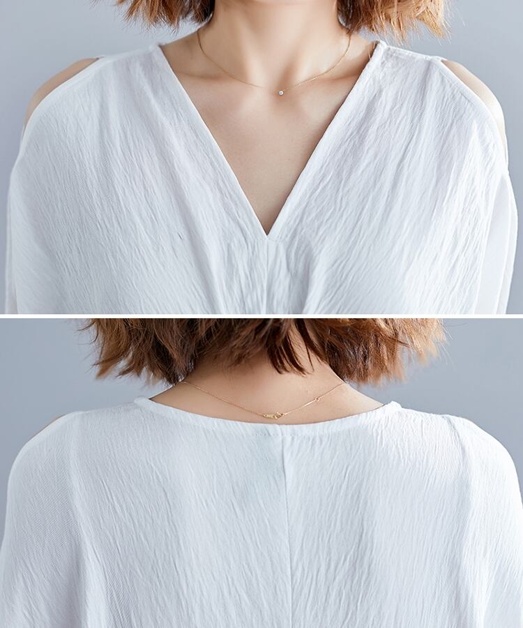 全2色 ワンピース ミモレ丈 オープンショルダー ゆったり Vネック ドレープ ノースリーブ 大人 カジュアル デイリー お出かけ デート リゾート 個性的 春 夏
