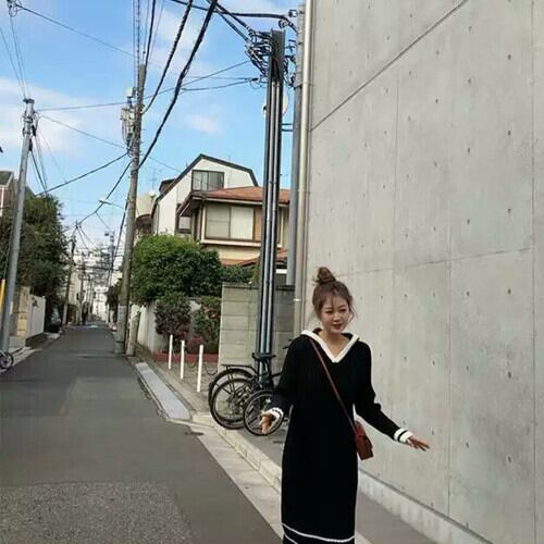 全2色 Vネック ニット ワンピース ロング丈 長め 大人 カジュアル キレイめ シンプル お出かけ お買い物 デート 女子会 通勤 通学 学生 秋冬 春