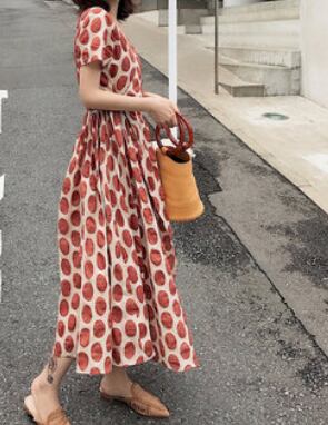 トレンドのドット柄がおしゃれでフェミニンな印象を与えてくれるロング丈ワンピースです。