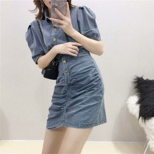スリム タイト デニム ワンピース ミニ丈 大人 キレイめ カジュアル 可愛い お出かけ お買い物 デート 女子会 通勤 通学 学生 韓国ファッション 春 夏