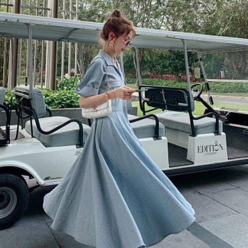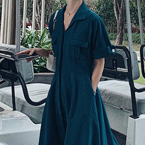 ワンピース 襟付き ポケット エレガント デート フレア 人気 春夏 カジュアル お出掛け 女子会 リゾート 半袖 ロングワンピ ロング丈 ドレス 夏 海 ビーチ