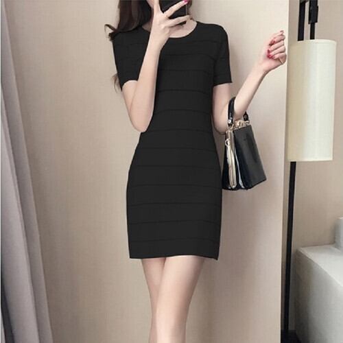 全3色 サマーニット ミニワンピース ラウンドネック 半袖 無地 透け感 シンプル きれいめ カジュアル お呼ばれ デート オフィス 夏 ホワイト ブラック レッド