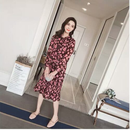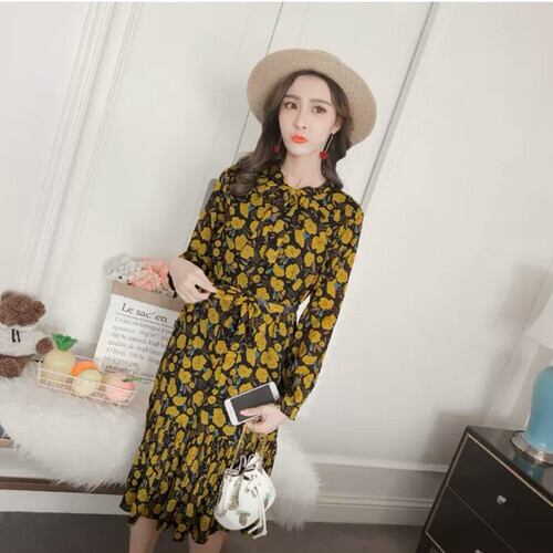 全3色 ロング丈 花柄 花 ワンピース マキシ丈 襟つき ベルト 柄 お出かけ お買い物 デート 秋冬 春 女子会 通学 学生 大人 カジュアル キレイめ