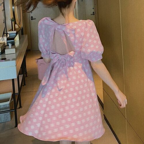 背中の大きなリボンがインパクト抜群のミニワンピース。