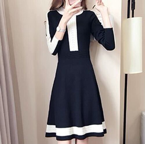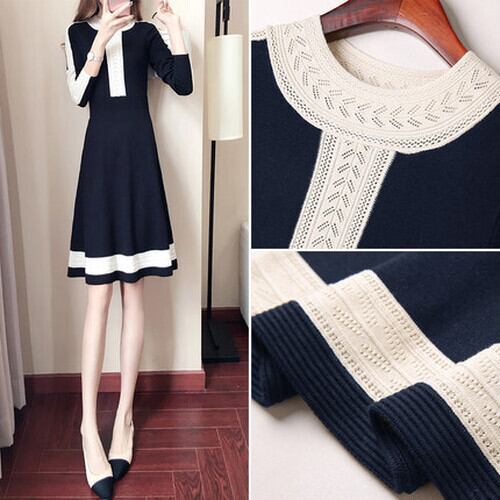 全4色 ワンピース 無地 シンプル ミドル丈 ラウンドネック エレガント きれいめ お呼ばれ パーティー お出かけ デート 秋冬