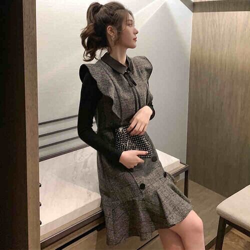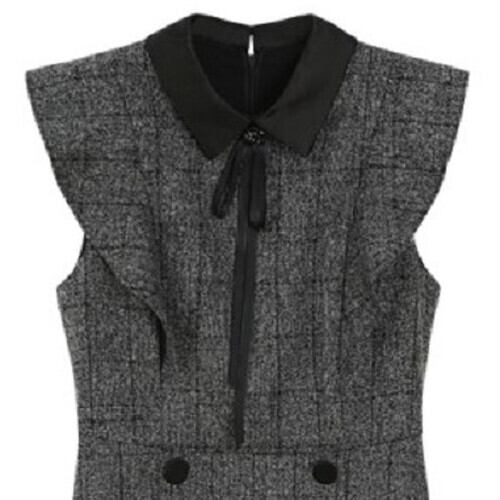 チェック柄 ミニ丈 ワンピース スカート 襟付きリボン フリル 秋冬 お出かけ デート 女子会 カジュアル フェミニン エレガント 大人可愛い ガーリー きれいめ レトロ くすみカラー ベイクドカラー ジャンパースカート