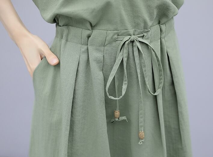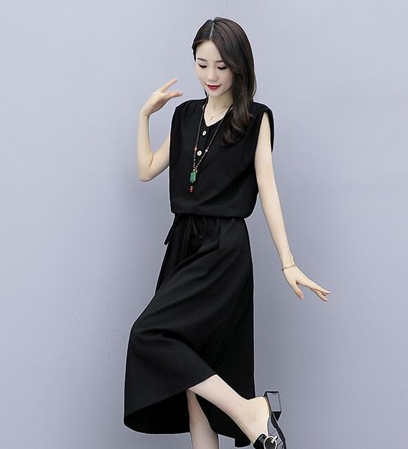 全3色 ワンピース リネン 麻 コットン 綿 ミモレ丈 ノースリーブ フロントボタン クルーネック ウエスト切り替え ウエストリボン Aライン 大人 シンプル デイリー カジュアル お出かけ デート リゾート 夏