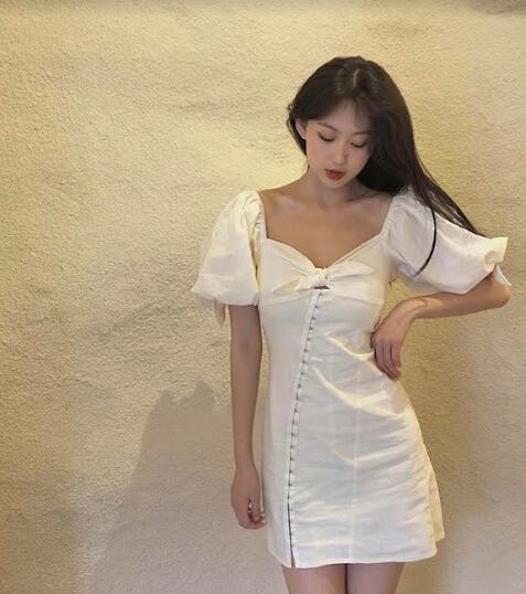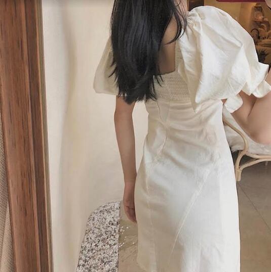 ワンピース リネン 麻 コットン 綿 ミニ丈 スクエアネック スリム オフショルダー 無地 タイト可愛い セクシー アシンメトリー パフスリーブ リボン カジュアル 半袖 お出かけ デート リゾート 夏