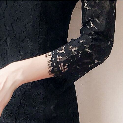 全2種 総レース ワンピース ひざ丈 七分袖 ラウンドネック クルーネック スカート Iライン 秋冬 デート お出かけ フォーマル お呼ばれ 結婚式 女子会 食事会 二次会 ワントーンコーデ 上品 きれいめ エレガント