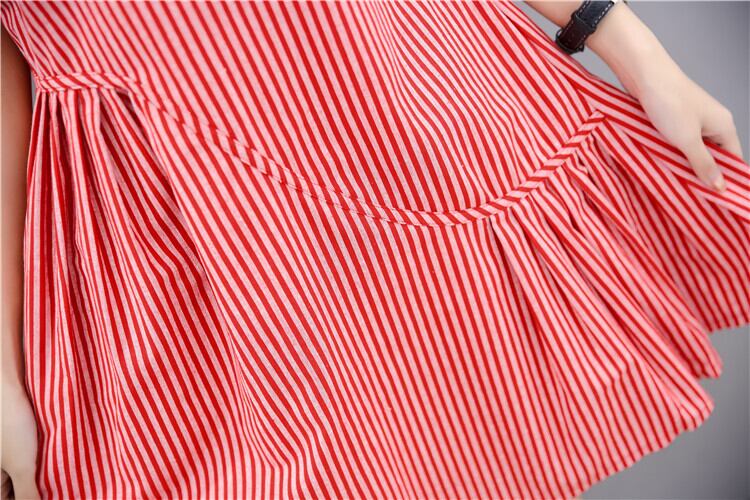 全2色 ワンピース 麻 綿 リネン コットン ストライプ ミニ丈 Aライン フレア ラウンドネック ドレープ ゆったり ガーリー 半袖 可愛い お出かけ カジュアル デート リゾート 夏