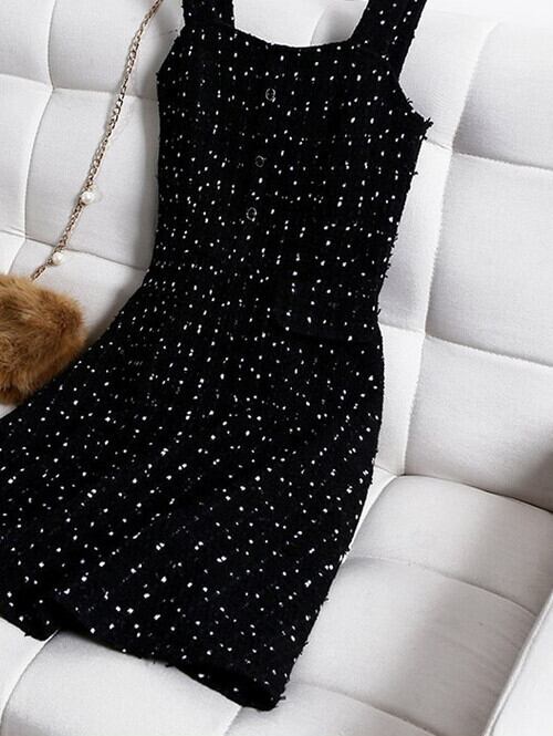 ツイードワンピース ミニ丈 ブラック サイドポケット ノースリーブ 大人かわいい 秋 冬 フェミニン デート お呼ばれ 休日コーデ
