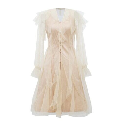 選べる袖丈 ワンピース ドレス シャンパンカラー 長袖 半袖 ミニ丈 シフォン パーティ お呼ばれ 結婚式 二次会 デート 韓国 オルチャン