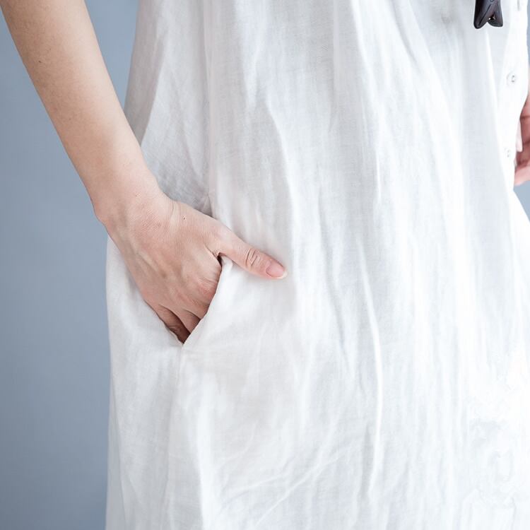 夏らしい、リネンライクなコットン素材を使用したシャツワンピース。