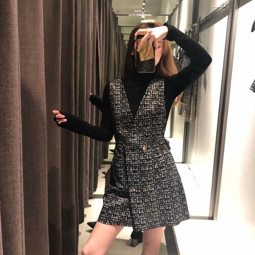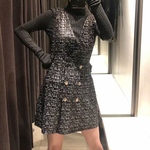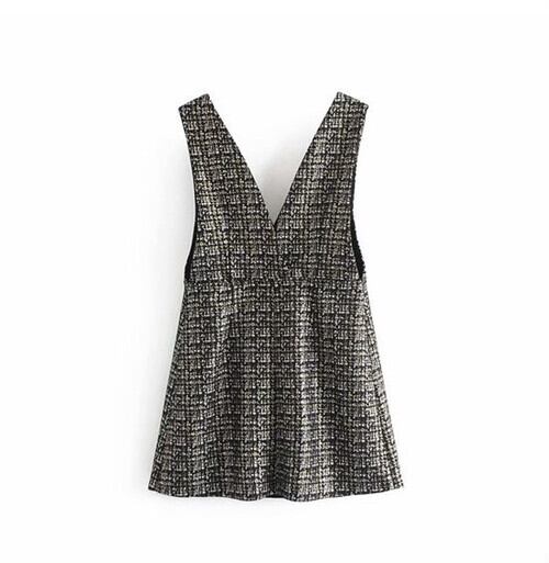 ツイード ミニ丈 ワンピース Vネック Aライン ジャンパースカート 秋冬 お出かけ デート 女子会 きれいめ カジュアル フェミニン 大人可愛い ガーリー 上品 エレガント