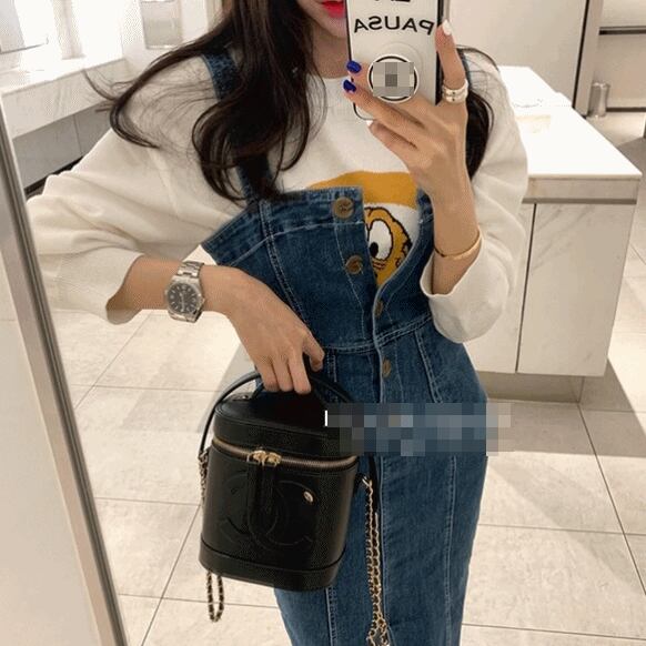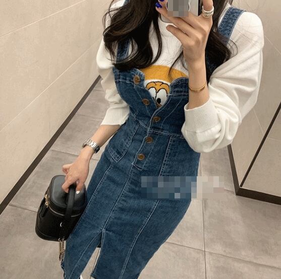 ジャンパースカート デニムワンピース サロペットスカート ミモレ丈 ジーンズ フロントボタン フロントスリット タイト カジュアル お出かけ デート 韓国ファッション 夏