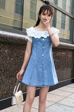 レースのディテールがフェミニンなデニムワンピース。
