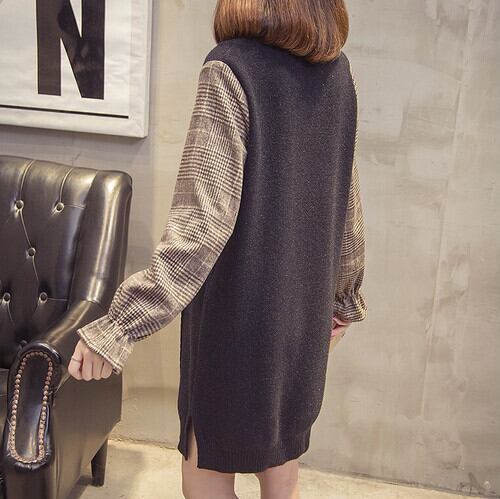 秋冬素材のニットベストワンピとブラウスがセットになった一枚。