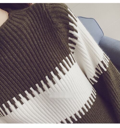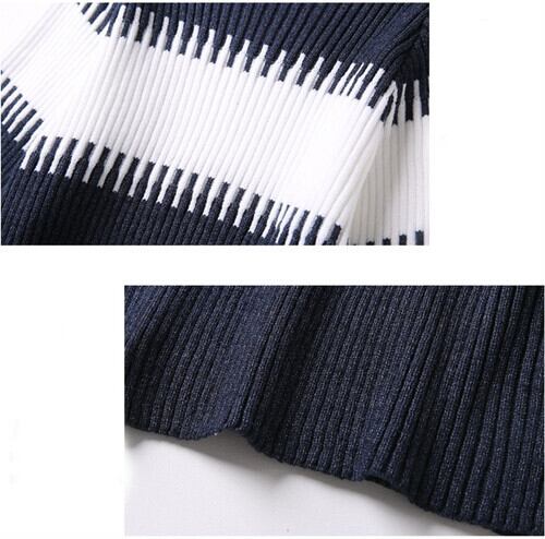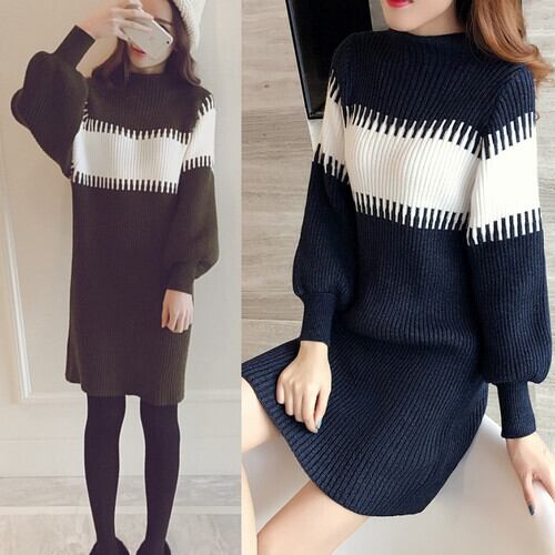 全2色 ニット ワンピース 長袖 ハイネック ミニ丈 パフスリーブ セーター 秋冬 お出かけ デート 女子会 カジュアル 大人可愛い エレガント フェミニン ガーリー レディ ボーダー