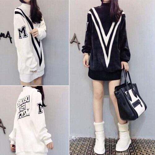 全2色 選べる裏起毛 ミニワンピース スウェット ハイネック チュニック ブラック ホワイト 大人カジュアル 休日コーデ 韓国 オルチャン リラックスウェア